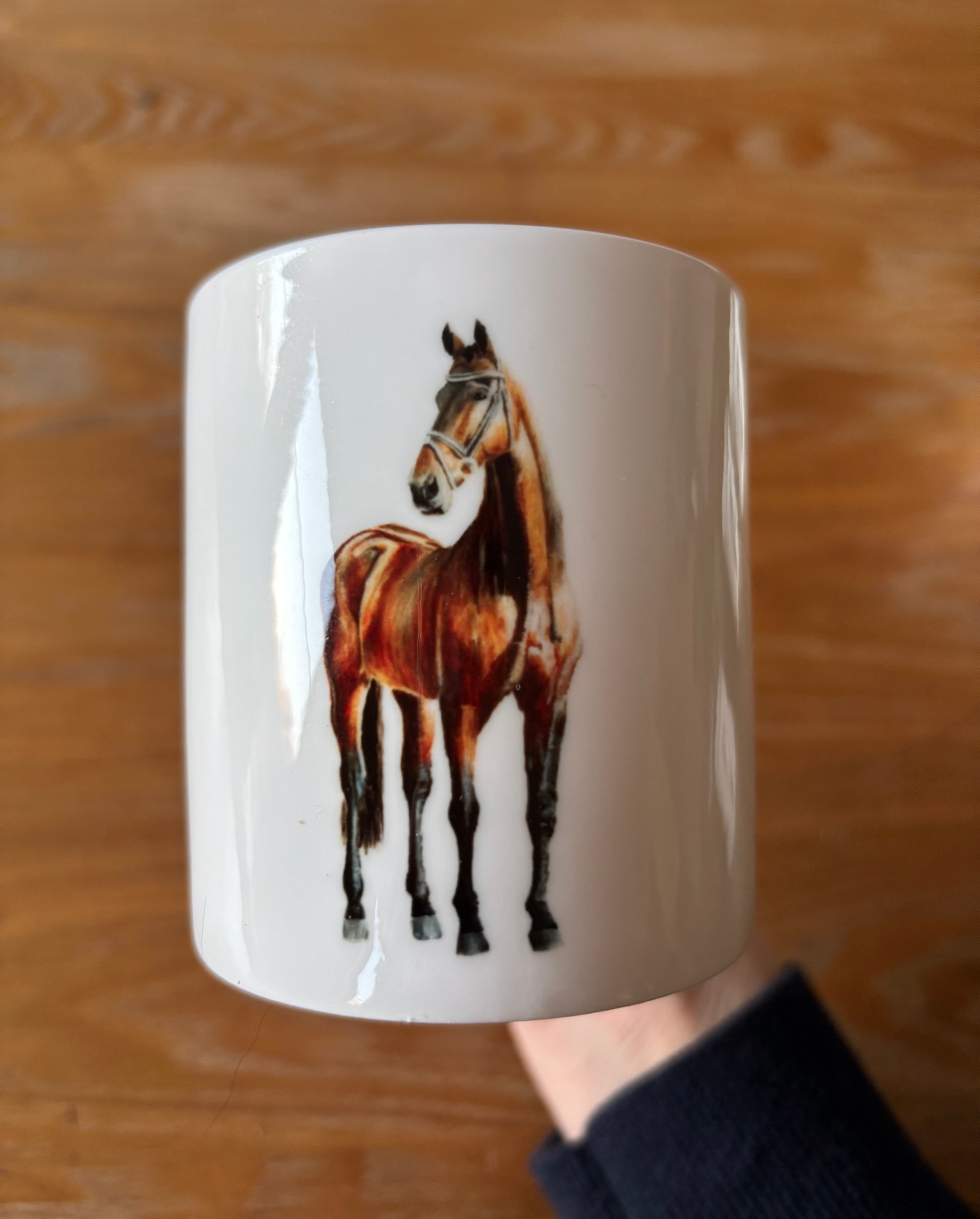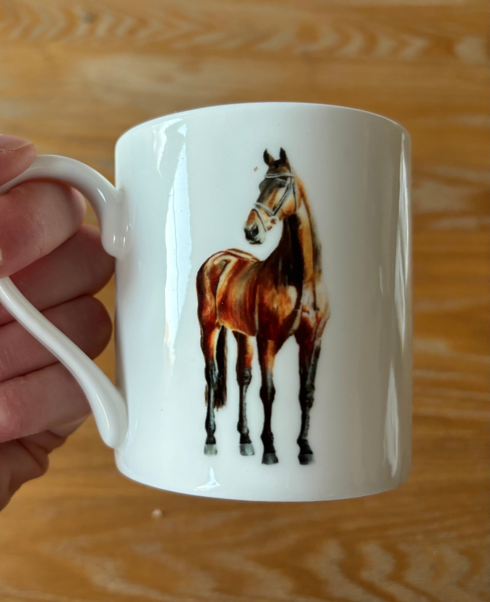 This Horse design is an original acrylic painting, the artist has taken her time by creating detail through layers of paint application. She has also used a bold use of colour to depict the qualities of the horse. Definitely a mug to make anyone smile, particularly horse-lovers - and an absolute asset to any mug cabinet!
